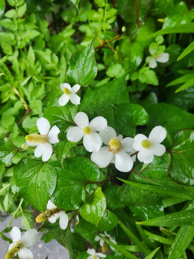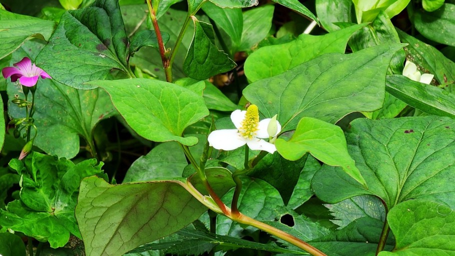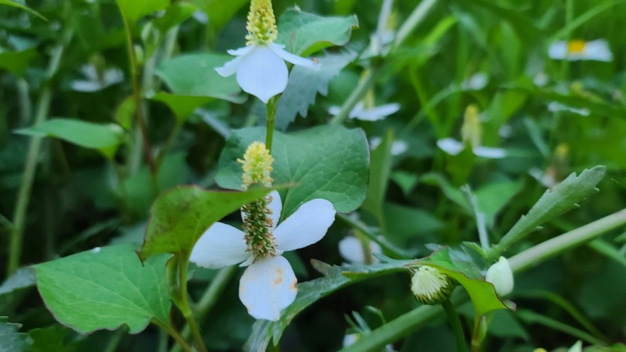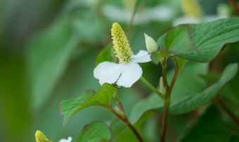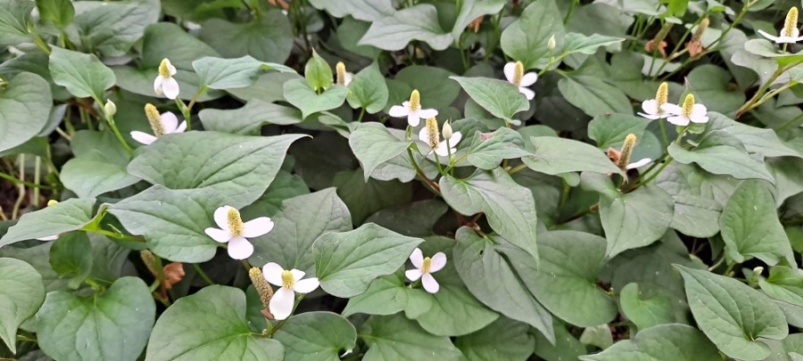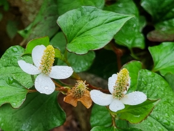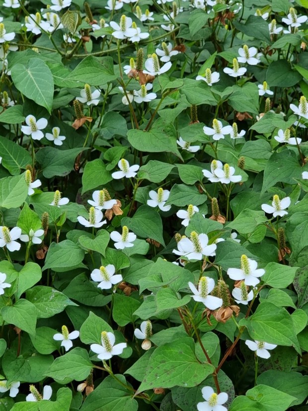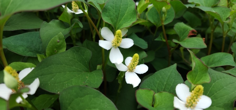어성초는 쌍떡잎식물로서 삼백초과의 다양한해살이풀로써 그늘진 숲 속에서 주로 자라며, 잎 모양이 메밀과 비슷하게 생겼다고 해서 약모밀이라고도 해요. 어성초의 이름은 잎에서 생선 비린내가 난다고 해서 붙여진 이름이며, 특유의 비린 향과 맛이 있어서 생으로 먹기에는 적당하지 않고 가공하여 어성초 차나 발효액, 또는 술에 담가 담금주로 만들어 마시기도 해요.